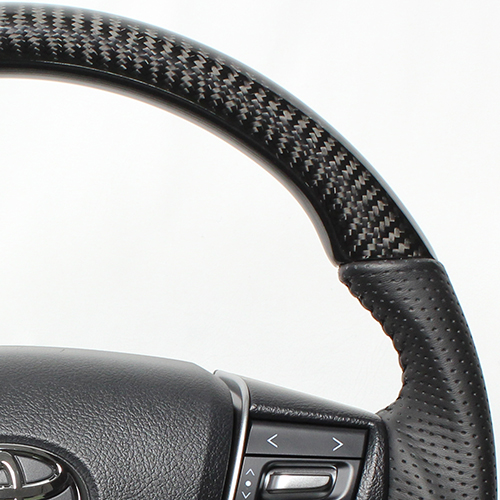 カーボンコンビステアリングは本物のカーボン、ウッドコンビステアリングは天然本木目を使用しています。