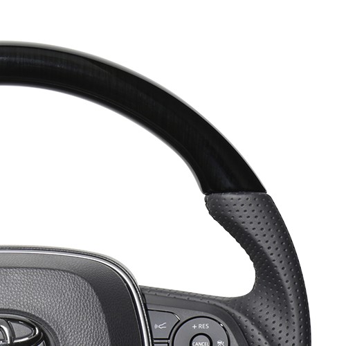 カーボンコンビステアリングは本物のカーボン、 ウッドコンビステアリングは天然本木目を使用しています。