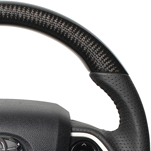 カーボンコンビステアリングは本物のカーボン、ウッドコンビステアリングは天然本木目を使用しています。