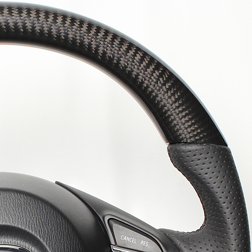 カーボンコンビステアリングは本物のカーボン、ウッドコンビステアリングは天然本木目を使用しています。