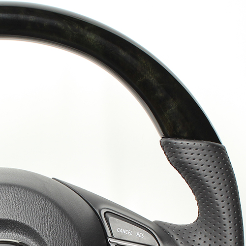カーボンコンビステアリングは本物のカーボン、 ウッドコンビステアリングは天然本木目を使用しています。