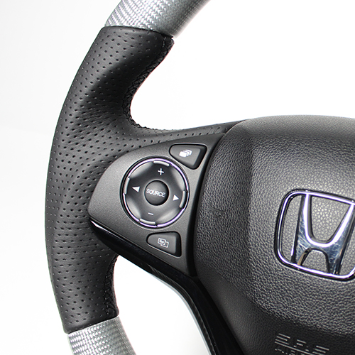 カーボンコンビステアリングは本物のカーボン、ウッドコンビステアリングは天然本木目を使用しています。