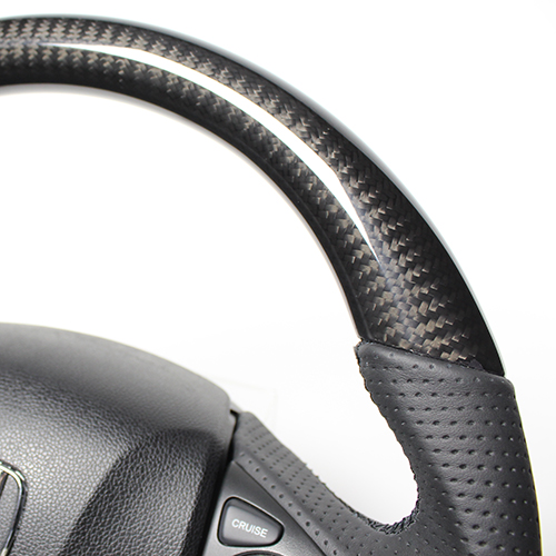カーボンコンビステアリングは本物のカーボン、ウッドコンビステアリングは天然本木目を使用しています。