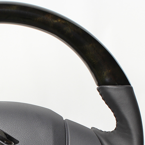 カーボンコンビステアリングは本物のカーボン、ウッドコンビステアリングは天然本木目を使用しています。
