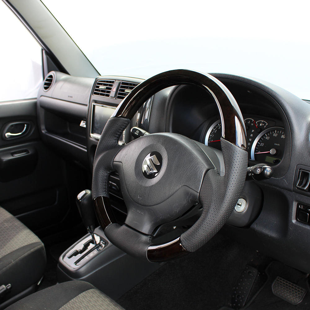 カーボンコンビステアリングは本物のカーボン、 ウッドコンビステアリングは天然本木目を使用しています。